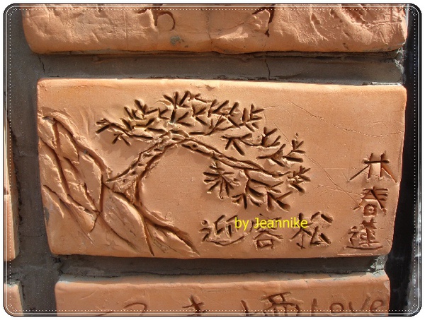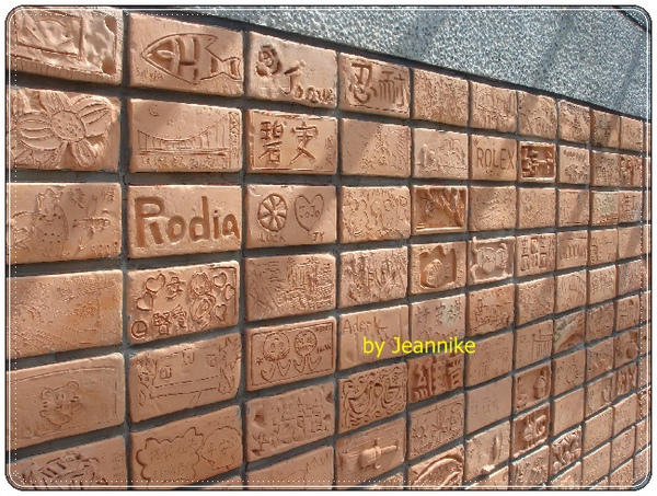 ,據說這是數年前在這地區的人幫忙刻下,然後去燒烤成磚再來嵌成一面面的牆,