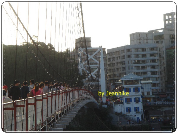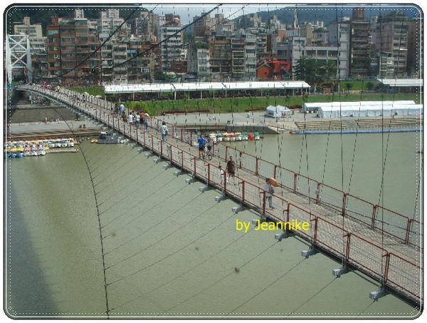 碧潭吊橋長約200公尺,走在吊橋上,搖晃的蠻厲害,站於橋上欣賞碧潭之美景,