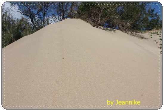 看著沙子隨著海風吹到路面堆積如小山,nike原想走近些拍照,哪知東北季風狂吹,