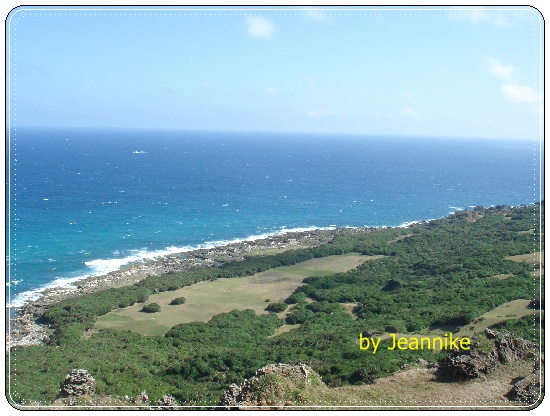 的白沙沿崖坡吹到崖頂;夏天雨季時窪地雨水匯集,沖沙順著地形流向海洋而為沙