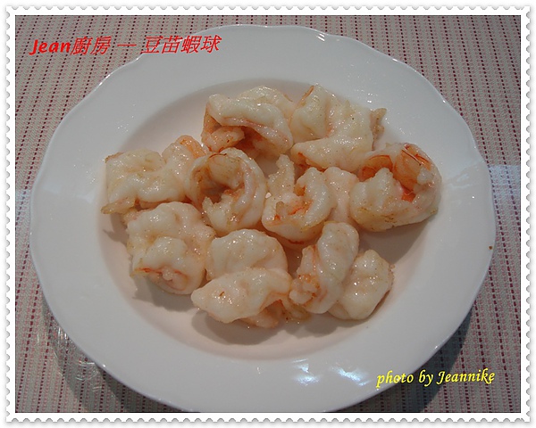 攪開約 30 - 40秒泡熟〈依蝦的大小調整時間),蝦球迅速撈出,泡太久蝦 肉會變