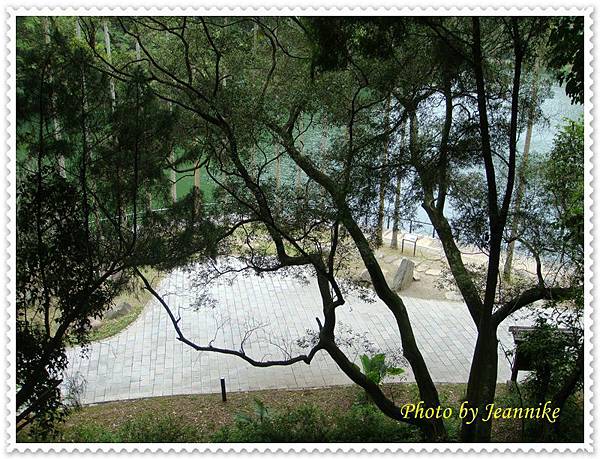 大石頭上刻著「後慈湖」,這也是直昇機的停機坪。而湖邊停靠
